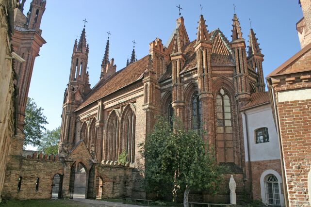 Šv. Onos bažnyčia – Lietuvos vėlyvosios gotikos šedevras. Bažnyčia prie Bernardinų vienuolyno pastatyta 1495–1500 m. Dailės istoriko D. Kačmažiko teigimu, bažnyčią projektavo ir statė Mykolas Enkingeris. 1501 m. Šv. Onos bažnyčiai popiežius Aleksandras VI paskelbė atlaidus. Bažnyčia išgyveno daugelį baisių dešimtmečių. Buvo griauta ir renovuota, apdegusi ir vėl atstatyta. Galų gale 1902–1909 m. bažnyčia restauruota. 1925 m. įkurta parapija. 1960–1970 m. pagal inžinierės Janinos Bartkienės projektą sutvirtinti yrantys bokštai. Šv. Onos bažnyčia yra vienanavė, lengvų ir grakščių formų. Vertingiausias yra pagrindinis bažnyčios fasadas – unikalus plytų gotikos architektūroje. Fasado statybai panaudota net trisdešimt trijų profilių plytos. Bažnyčios fasadas yra gotiškos bazilikos struktūros, darnių proporcijų, plastiškai užbaigtas kūrinys, neturintis sau lygių visoje rytų Europos plytų gotikoje.