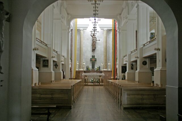 Bažnyčia neogotikinio stiliaus, vienabokštė, statyta iš akmens mūro, jos architektūroje regima neoromantinio, klasicistinio ir neogotikinio stilių jungtis. Papildomą pastato fasado vizualinį efektą kuria tinkuoto orderio elementų, suporintų piliastrų sąskambis su grublėtomis, turtingų atspalvių sienomis. Bažnyčioje yra penki altoriai, interjeras santūrus. Vidaus erdvę pilioriai dalija į tris navas. Pagrindinis didžiojo, santūrių šiuolaikiškų formų altoriaus akcentas yra tarsi kylanti į viršų Kristaus skulptūra ir didžiąją apsidės lubų dalį užimantis Švč. Trejybę vaizduojantis vitražas. Altoriaus kompoziciją įrėmina dvi apvalios kolonos, laikančios nesujungto karnizo dalis.